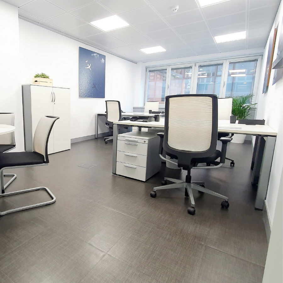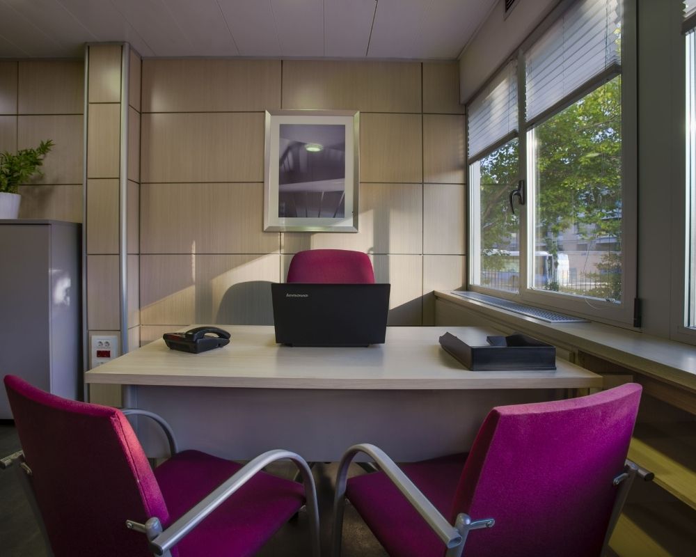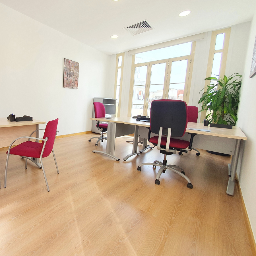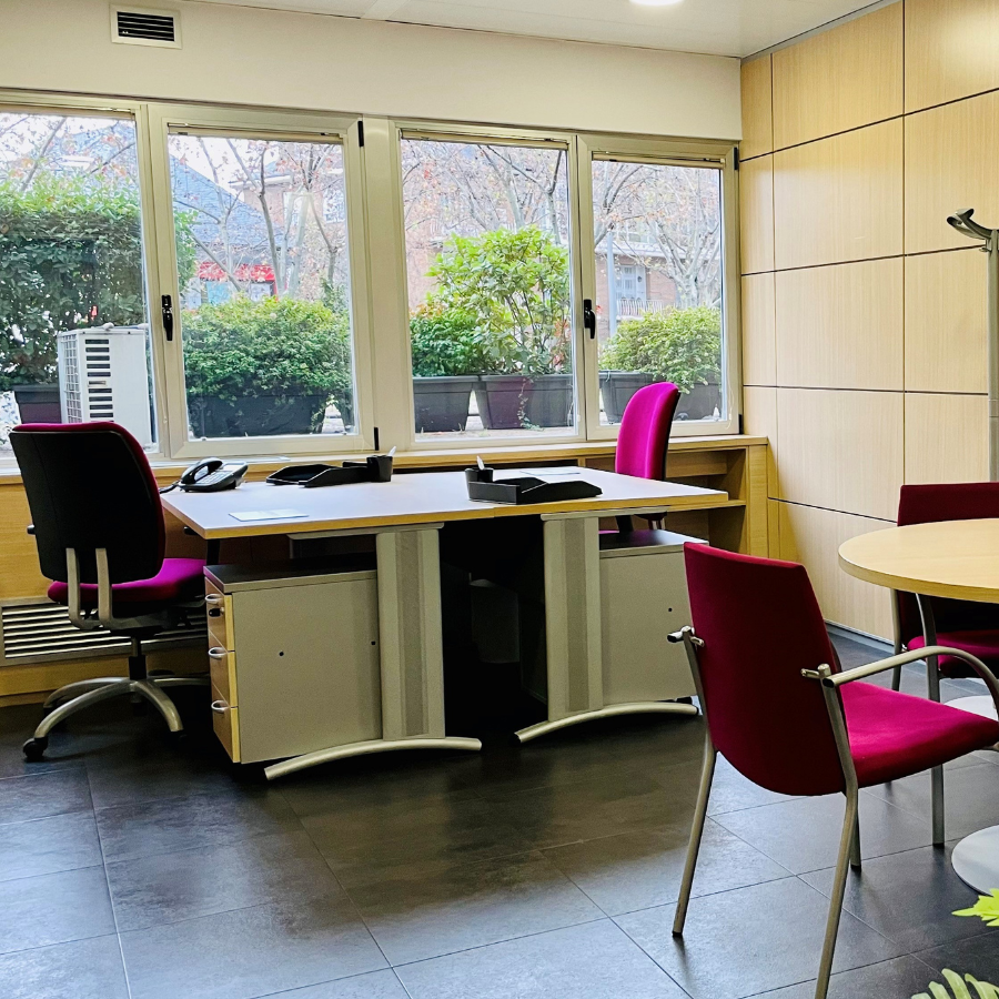 Cuenta con una amplia recepción, despachos muy luminosos de diferentes capacidades, algunos de ellos incluso con terraza privada y sobrias salas de reunión.