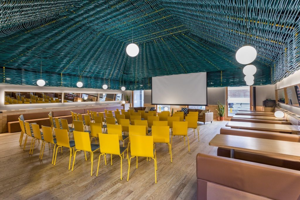 Situado en la tercera planta de Impact Hub Piamonte y de gran amplitud, esta sala recibe luz natural de la terraza orientada a la calle Piamonte. El mobiliario incluye una zona de mesas fijas con sofás bancadas, y otra zona de mesas móviles y sofás para adaptarlo a las necesidades de tu evento.