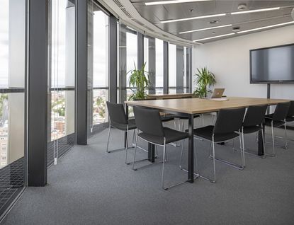 La sala de reuniones 28B está situada en la penúltima planta de Torre Europa, uno de los rascacielos más destacados del distrito financiero de Madrid. Su privilegiada ubicación y su gran cantidad de luz natural la hacen perfecta para cualquier reunión profesional. Además, cuenta con pantalla digital.